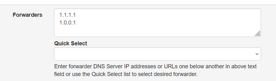 settings=>proxy and forwardersのここが上流dnsサーバーを指定するところで