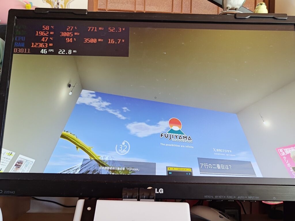 あ、補足ですがアバターはvroid製のオリキャラに出演してもらいました。重さはvery poorです。緑ちゃんkawaii。後、モニターはFHDフルスクリーンです。