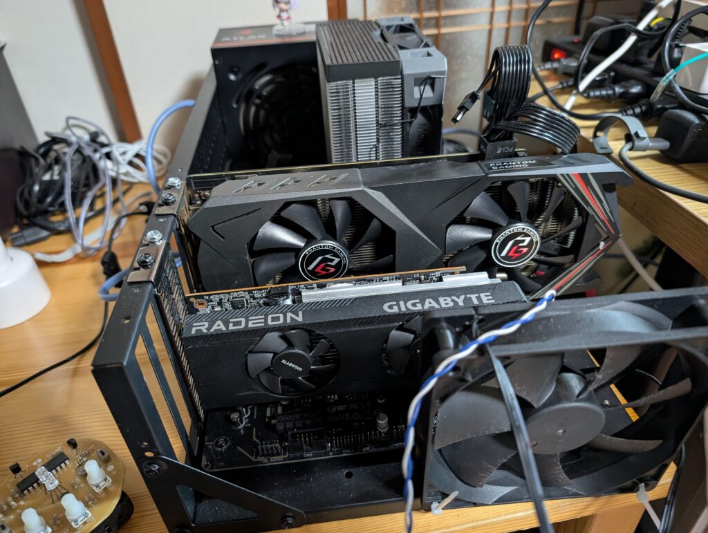 配信用パソコンを配信用兼LLMサーバーにしたいなと思って、取り敢えず手元にある中で一番VRAMが多いものをのせた感じです。