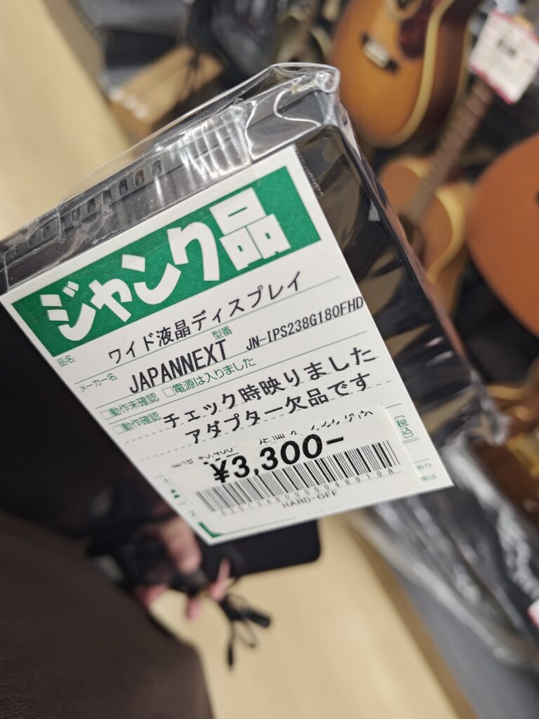 まずはこれです。見つけた時「ん?やけに包装が綺麗だな?」と思って調べて見たらなんと180hzモニターでびっくり。どうやらゲオ限定モデルのjapannnextのようで、すぐに動作確認して確保しました。