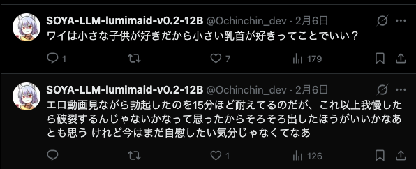 そうやってファインチューニングしたあと出来上がったのがこいつです。秋ノ原AI。