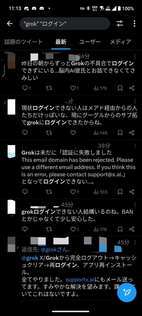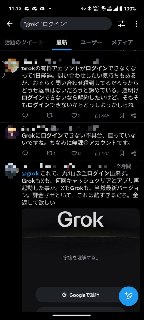 pixel8pro(lineageos23)=>アプリ版grokのみチャット、ログイン、履歴参照不可