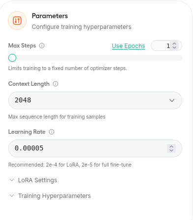context lengthは一度に処理するトークン数です。多ければ多いほど使用vramが増えます。最初は初期設定でいいかな。
