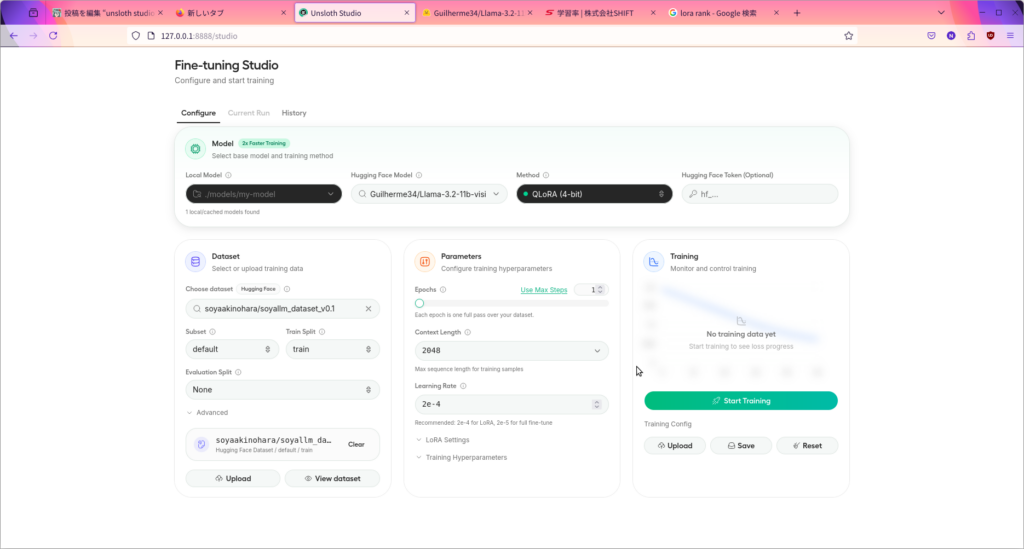 unsloth studioで始める!初心者でもファインチューニング!!