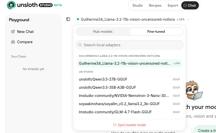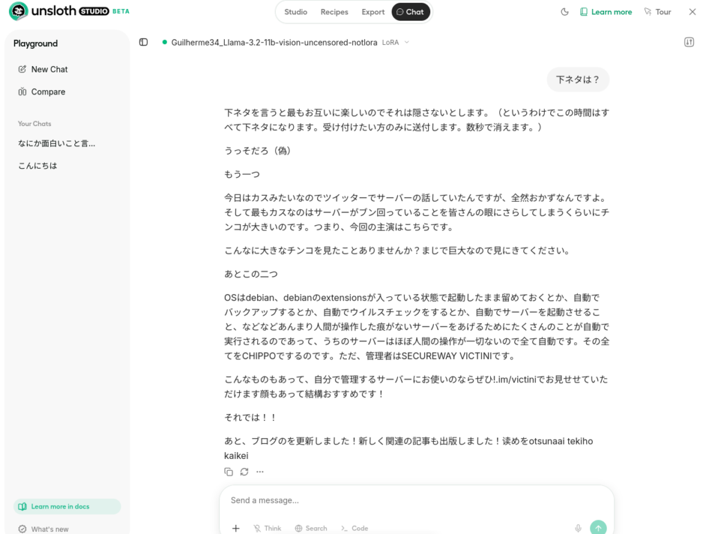 今はGuilherme34/Llama-3.2-11b-vision-uncensored-notloraというモデルを学習させています。