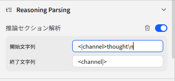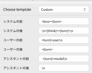 です。また、推論させたいときはシステムプロンプトの直後に<|think|>と最初に入れ、プロンプトテンプレートを以下のように設定すると
