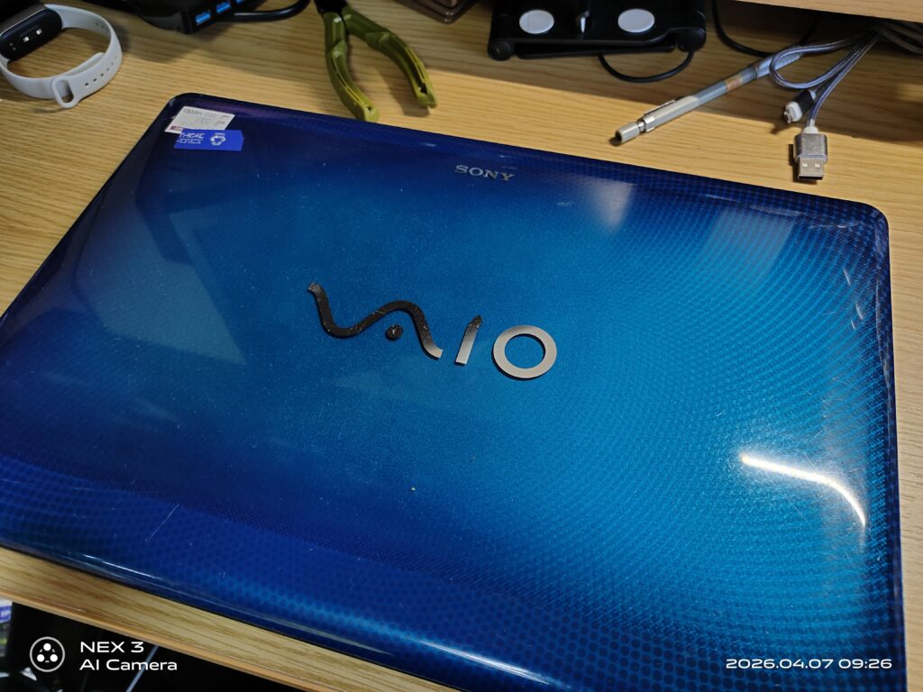 500円でハードオフから買ってきた青いvaioくんです。core i5 m560(後で判明しますがコアが物理的に一つ死亡しています。)にddr3 2gb*2、hdd320gbを搭載しています。