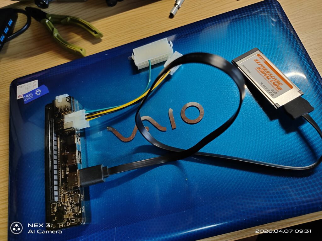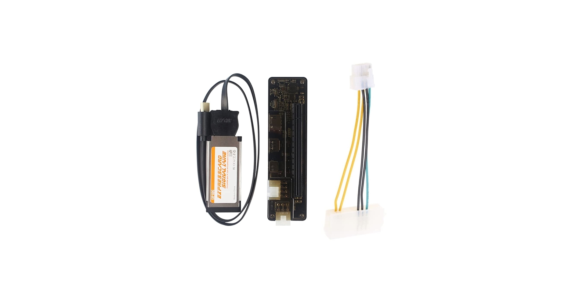 これは何かというと、expresscardという、昔のパソコンにあった拡張スロットからpcie×16を取り出すことができるものです。expresscardは内部でpcie1.0もしくは2.0の×1を使用しているのでこんな荒業ができてしまいます。中華謎技術ってすごい。