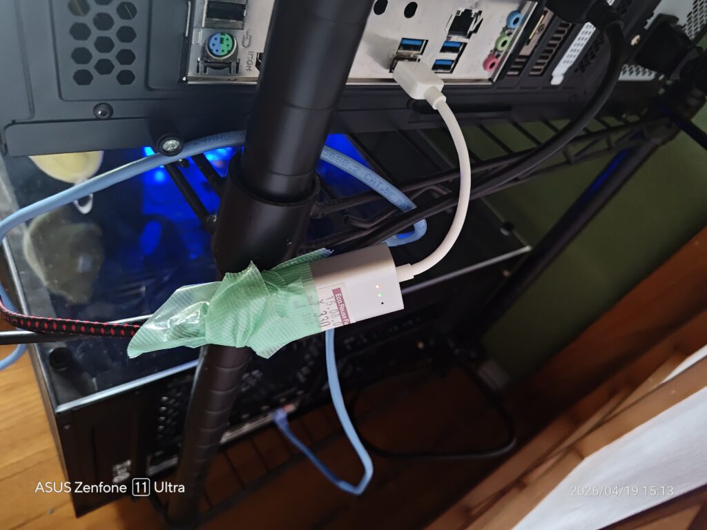 上の12100fマシン、オンボードのNICがI219Vなのですが、こいつがproxmoxと相性が悪いみたいでちょくちょく落ちてしまいます。なので他に相性のいいLANアダプタで代用しました。が、そいつはRJ45コネクタのロック機構がガバスカのジャンク品の末路だったので仕方なくこうしました。